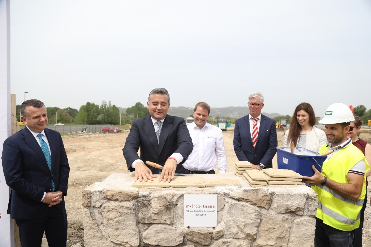 Nisja e punës për ndërtimin e MK Hotel, një nga brandet prestigjioze të hotelerisë gjermane, bijë e kompanisë, Lindner Group, pranë aeroportit të Rinasit, për ministrin Klosi, është një nga hapat më të rëndësishëm në zhvillimin e industrisë së turizmit në përgjithësi, dhe të hotelerisë në veçanti, në Shqipëri. “Gërmimet, që do të fillojnë sot, hapin themelet e një bashkëpunimi të cilin jo vetëm për vendin tone, por për këdo vend jo vetëm të rajonit, por të gjithë Evropës, prezenca e hotelerisë gjemane është mëse e mirëpritur. Ajo që do të ndodhë sot në Shqipëri është garanci për cilësi, korrektesë, siguri, profesionalizëm, certifikim të vlerave të shërbimit në të. Ndaj si ministri i Turizmit dhe Mjedisit kam kënaqësinë t’ju them që: Po, ia dolëm së bashku të kurorëzojmë një punë disamujore për të pasur sot një grup të fuqishëm të biznesit gjerman, Lindner Construction, në një vendimmarrje të tij të fundit për të filluar një investim 100% gjerman, një investim që do të sigurojë edhe këtu në Shqipëri një shërbim cilësor ashtu siç ka siguruar në Berlin, Londër, Frankfurt, Mynih, Shtutgart, Kroaci”, tha ministri Klosi. Ai theksoi se ky investim me 5 yje, do të garantojë cilësi dhe standarde, pranë një vendi strategjik, siç është aeroporti i Rinasit, ku do të kemi një oaz të vërtetë të një hoteli me 5 yje për ata që do të udhëtojnë nga Rinasi, por edhe për ata që duan të shijojnë bukuritë e kësaj zone. “Ne duam shumë që sfida jonë 10 milionë turistë, të arrihet duke ofruar cilësi dhe standarde. Ajo që ne po nxisim gjithmonë e më shumë janë investimet e vërteta, investime të investitorëve të huaj por edhe të biznesmenëve shqiptarë në kombinim, t’i afrohen kësaj politike të re për të pasur mundësinë që fuqia e standardit të 5 yjeve të tërheqë të gjithë vagonin e turizmit shqiptar. Ndihem shumë mirë që së bashku ia dolëm të kemi 5 ceremoni sinjifikative, në harkun kohor të 5 muajve. Inauguruam Hilton në Tiranë, inauguruam prezencën Hayat, Marriot në Tiranë, para pak ditësh Melian në bregdetin shqiptar, sot kemi MK Group nga Lindner Construction, pra jemi sot të realizuar në një nga objektivat madhore të institucionit që ne drejtojmë”, tha ministri Klosi.