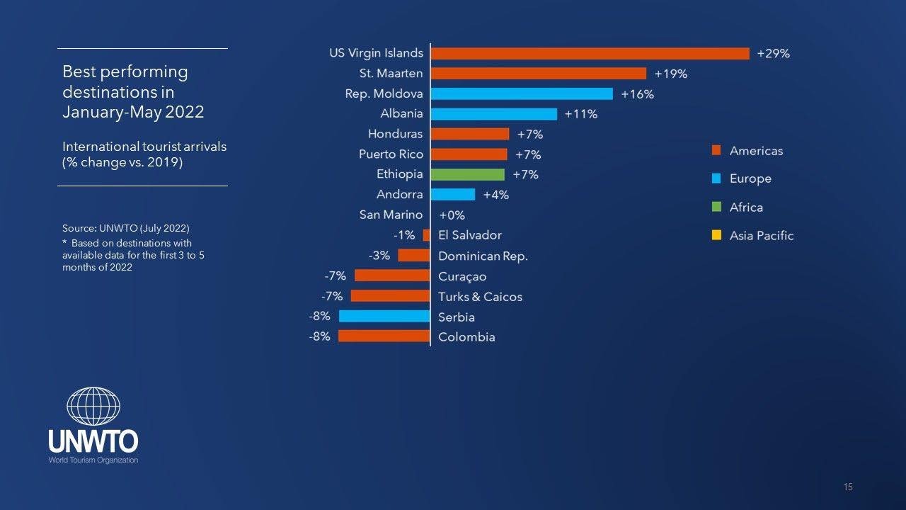 Organizata Botërore e Turizmit e rendit Shqipërinë të katërtën në botë për rimëkëmbjen e sektorit të turizmit. Lajmin e ka dhënë ministrja e Turizmit dhe Mjedisit Mirela Kumbaro, e cila theksoi se kjo renditje tregon rimëkëmbjen e sektorit të turizmit për sa i përket flukseve ndërkombëtare në 5 muajt e parë të vitit 2022.